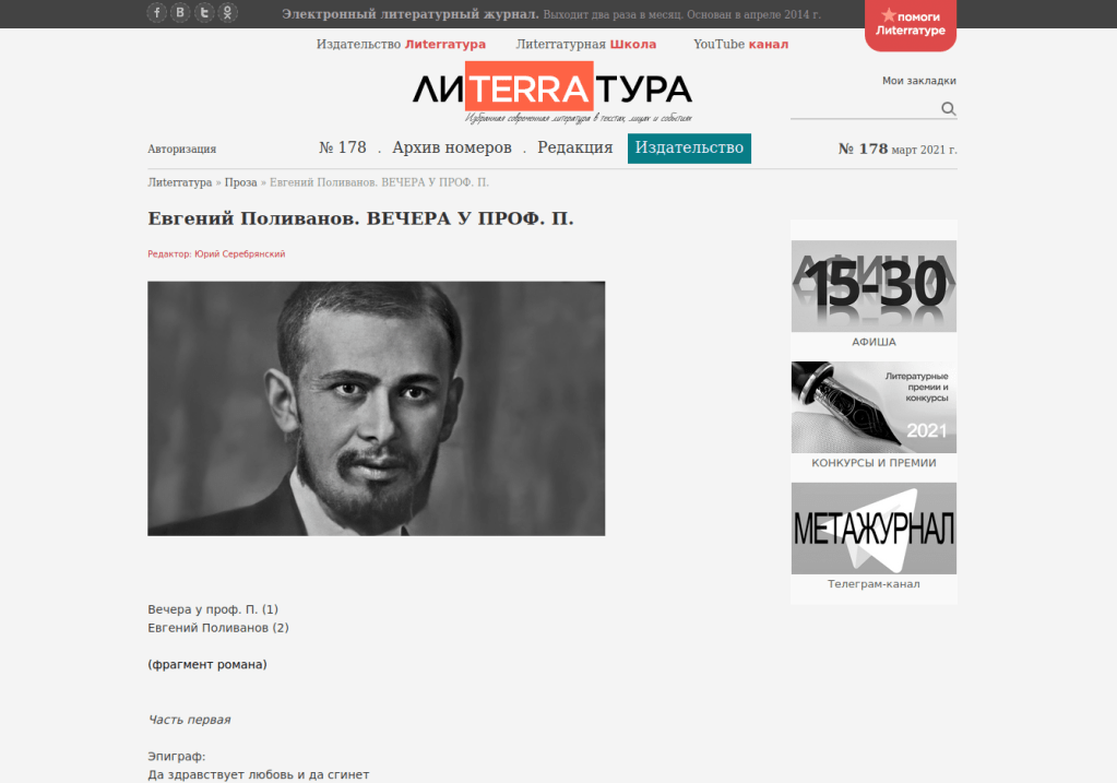 The brilliant Soviet linguist Yevgeny Polivanov was killed in the Terror in January 1938. Although he wrote prolifically in many genres, he was unable to publish most of his work in his lifetime and after his death most of what remained was lost or destroyed. A fragment of his unfinished novel survives today on a microfilm in a Moscow archive, and in 2020 I published it with commentary in the online literary journal Literratura: